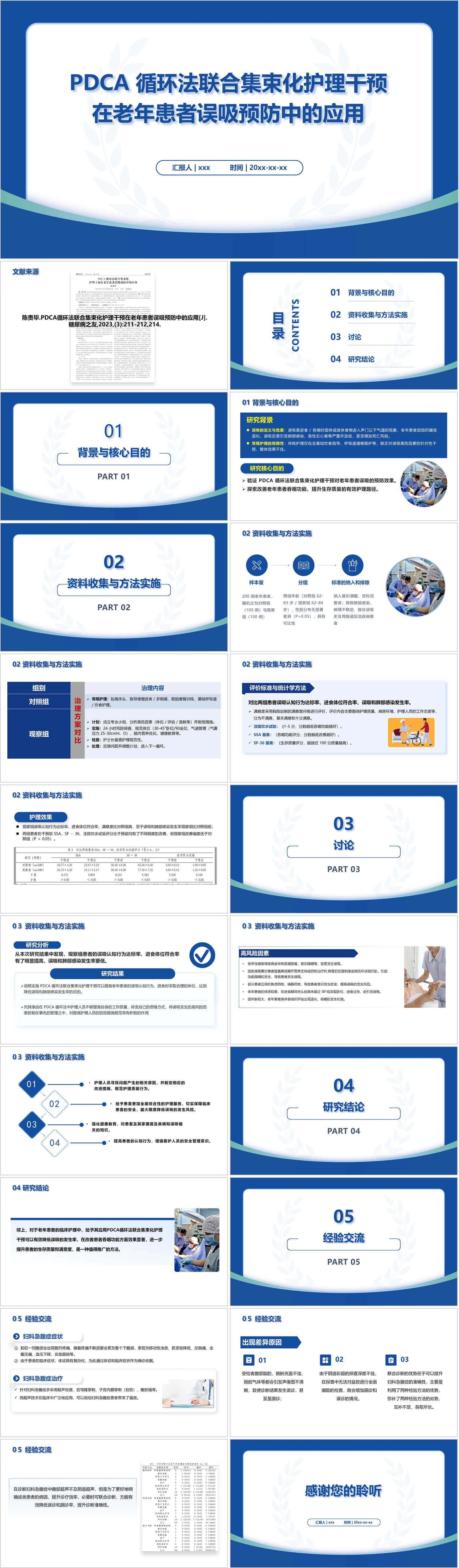 #精品 YXKJ728-PDCA 循环法联合集束化护理干预在老年患者误吸预防中的应用-文献解读PPT模板成品课件