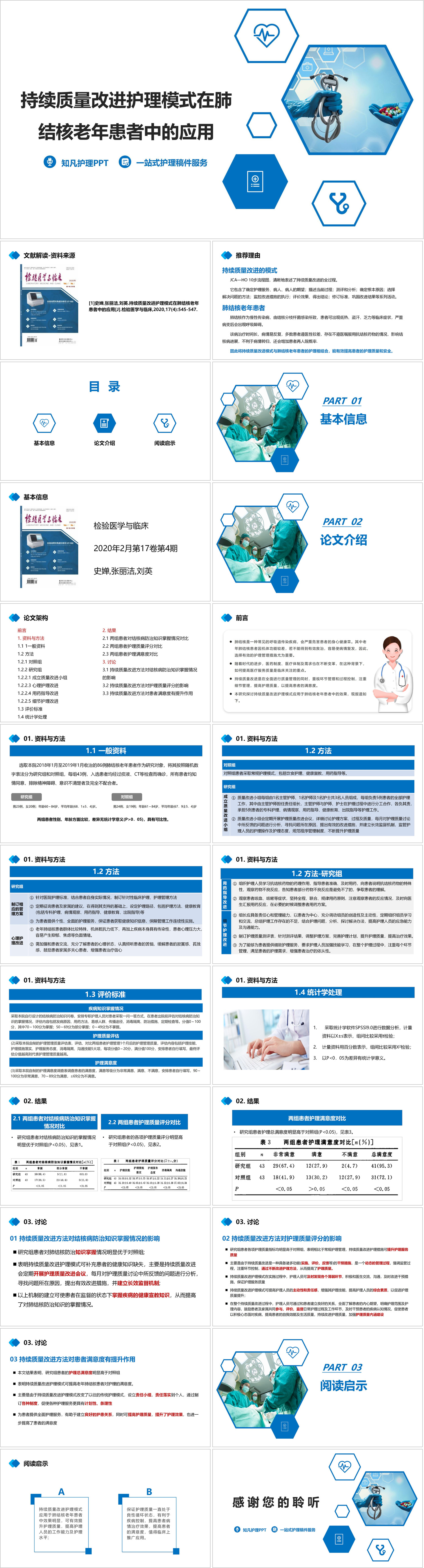 #精品 YXKJ797-持续质量改进护理模式在肺结核老年患者中的应用-文献解读PPT模板成品课件