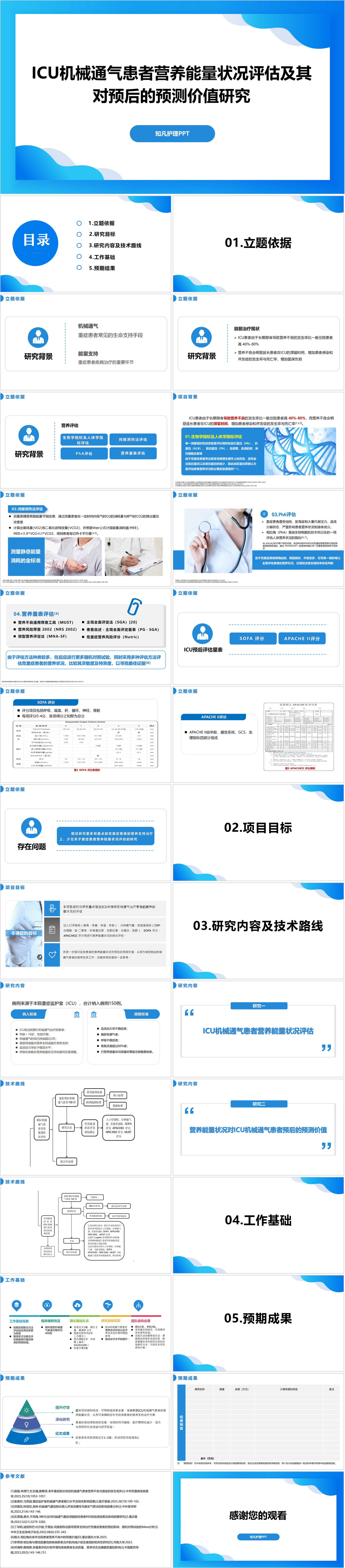 #精品 YXKJ982-U机械通气患者营养能量状况评估及其对预后的预测价值研究-项目申报PPT模板成品课件