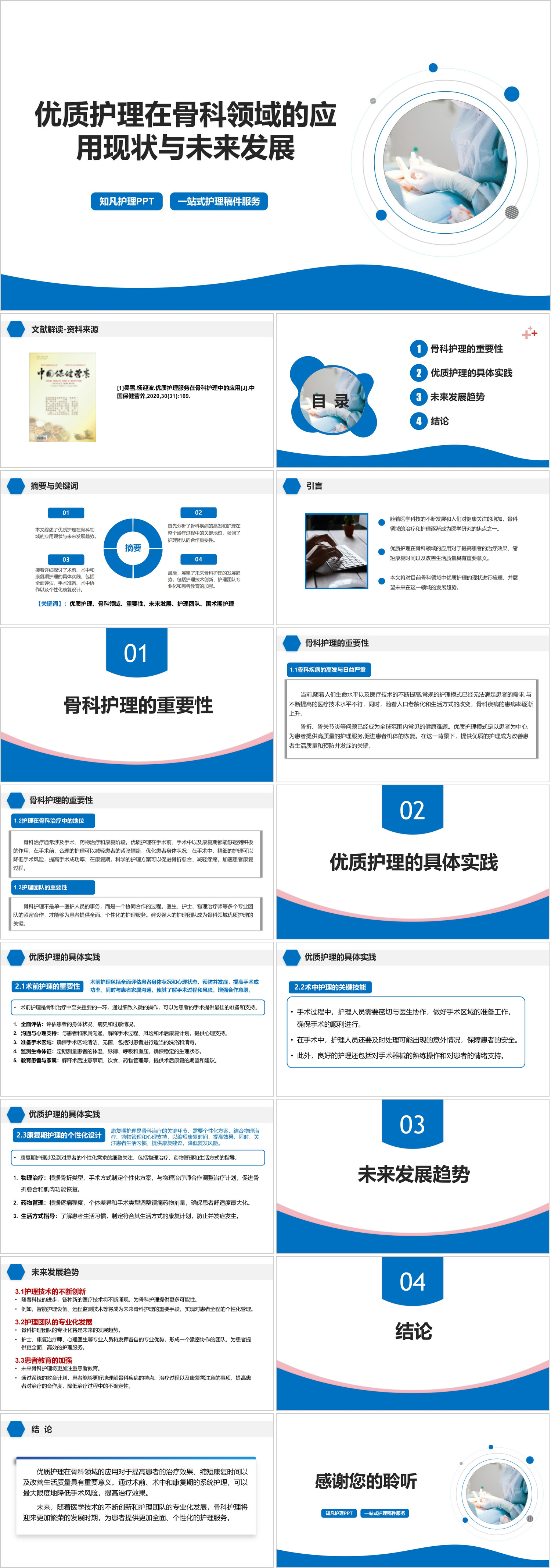 #精品 YXKJ1144-优质护理在骨科领域的应用现状与未来发展-文献解读PPT模板成品课件