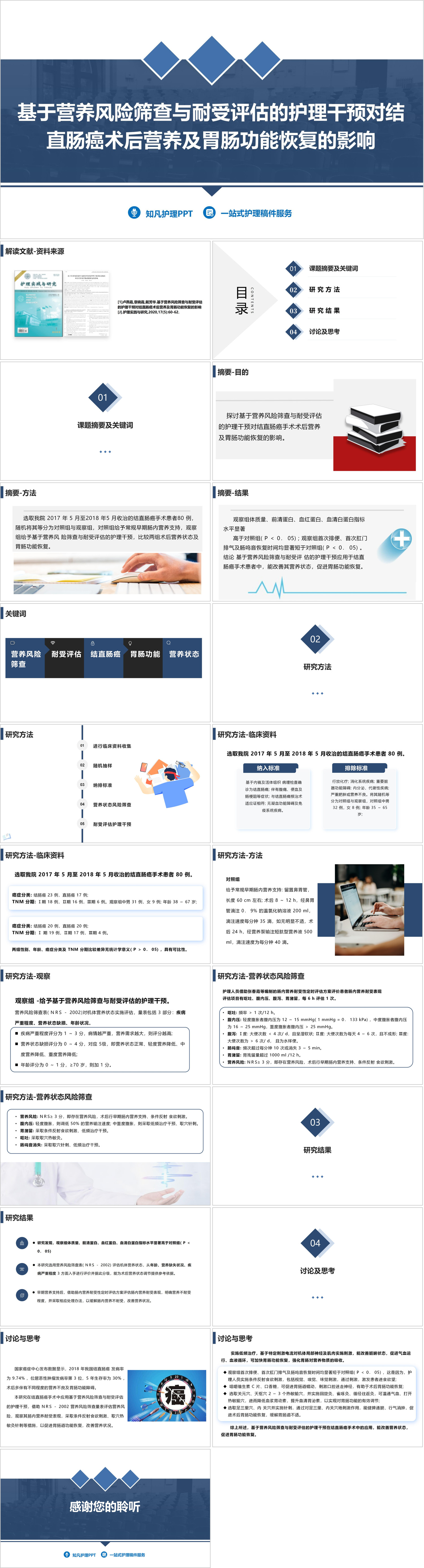 #精品 YXKJ1301-基于营养风险筛查与耐受评估的护理干预对结直肠癌术后营养及胃肠功能恢复的影响PPT模板成品课件