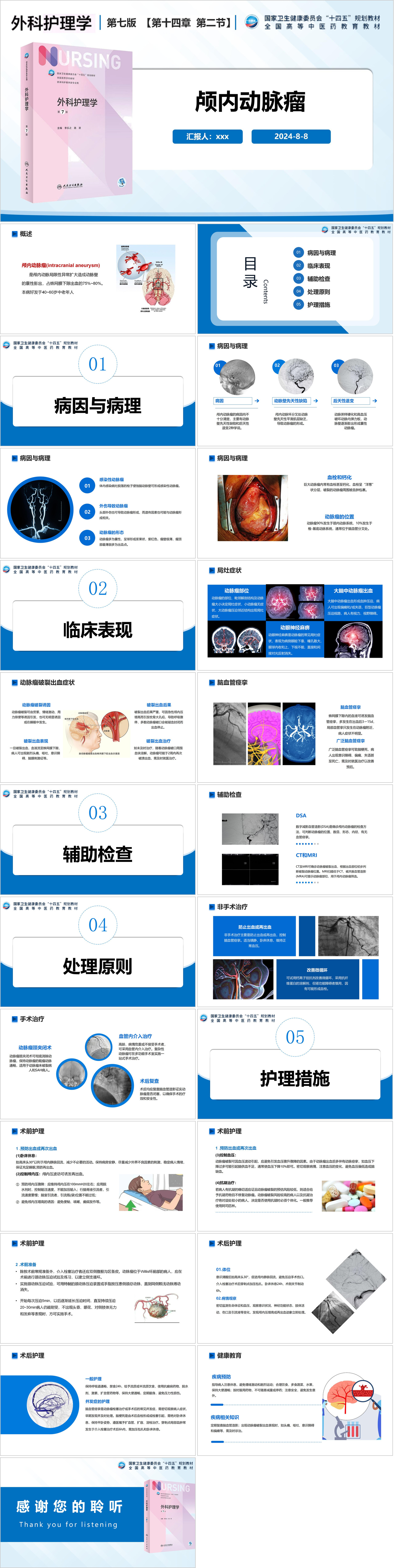 #精品 YXKJ1396-颅内动脉瘤的认识和护理-业务学习PPT模板成品课件