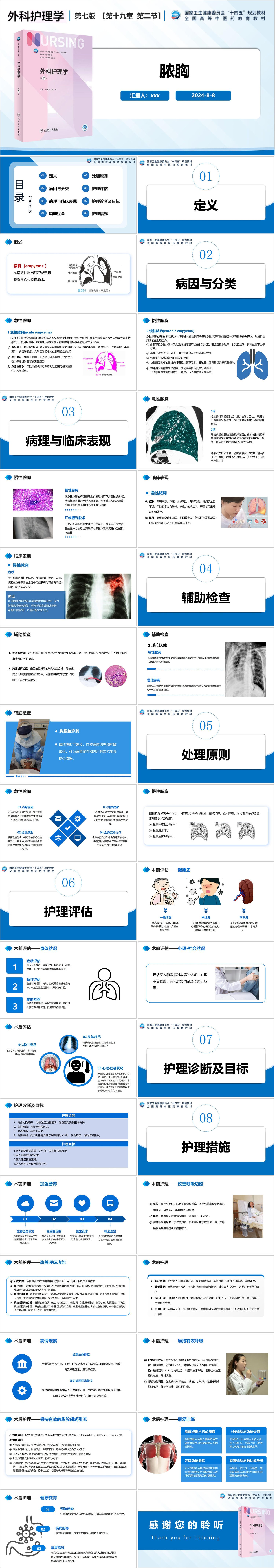 #精品 YXKJ1435-脓胸的认识和护理-业务学习PPT模板成品课件