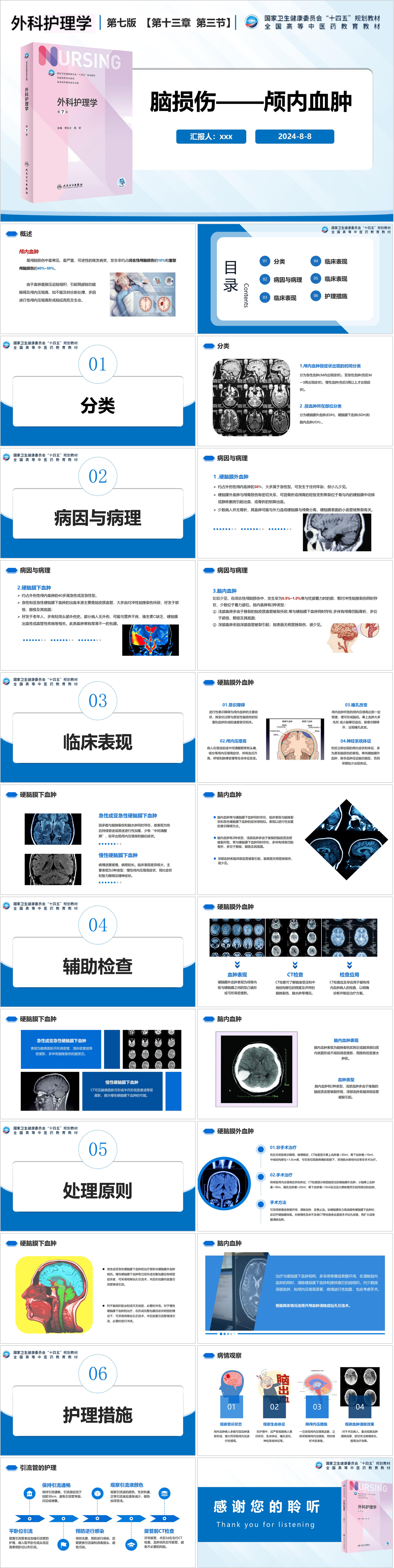 #精品 YXKJ1397-颅内血肿的认识和护理-业务学习PPT模板成品课件