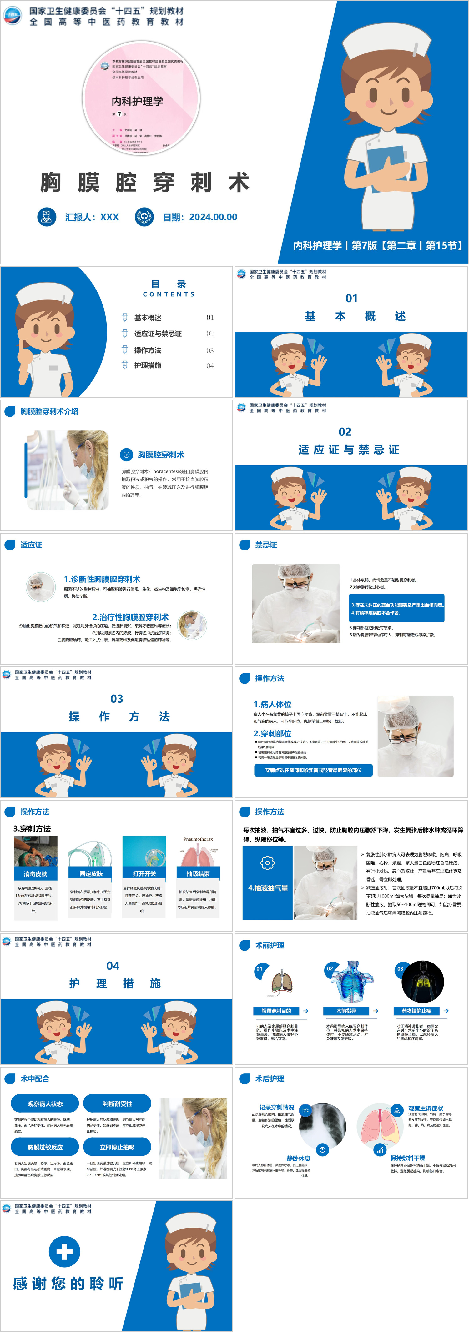 #精品 YXKJ1417-呼吸系统技术及护理-胸膜腔穿刺术-内科业务学习PPT模板成品课件