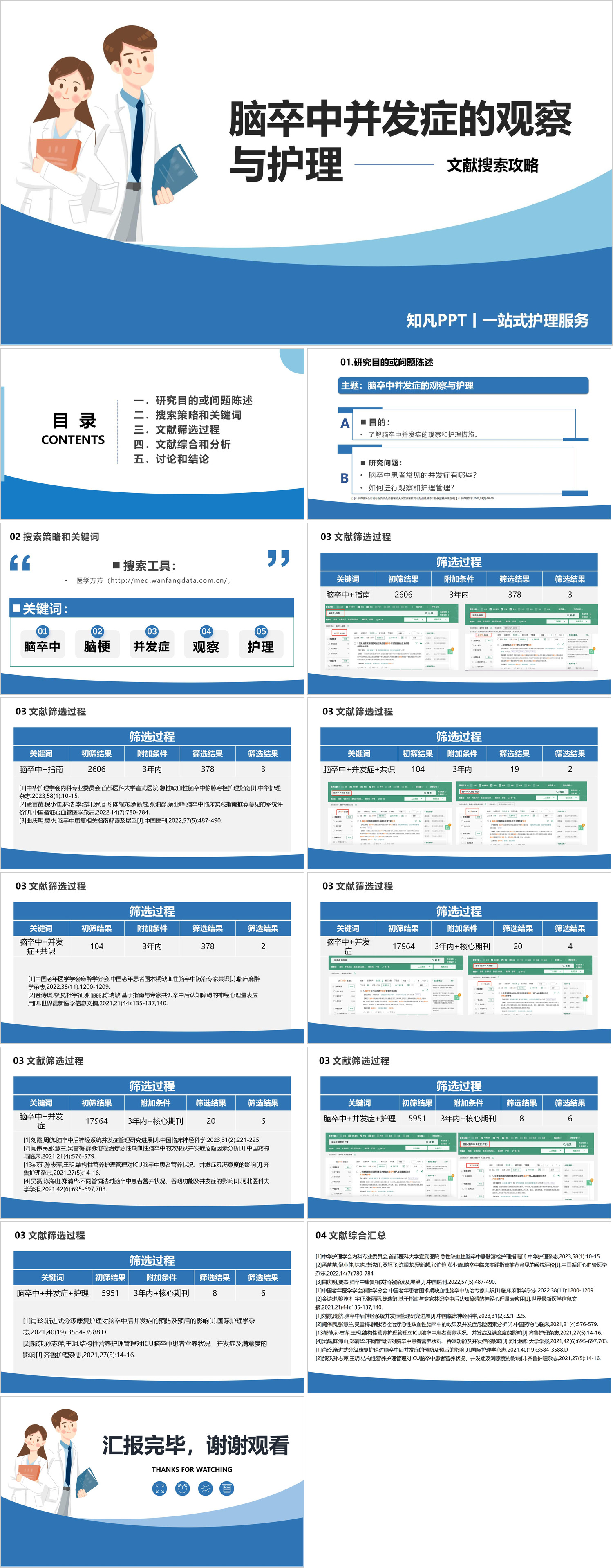 #精品 YXKJ1447-脑卒中并发症的观察与护理-文献搜索攻略-小讲课PPT模板成品课件