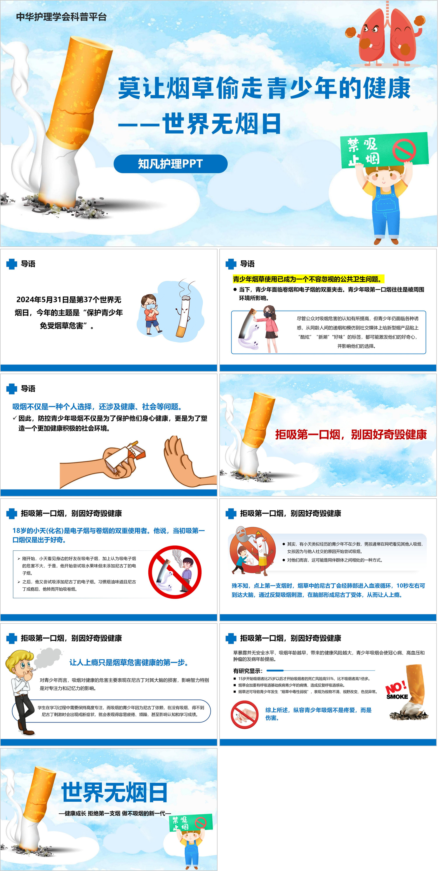 #精品 YXKJ17-莫让烟草偷走青少年的健康——世界无烟日-科普教育PPT模板成品课件
