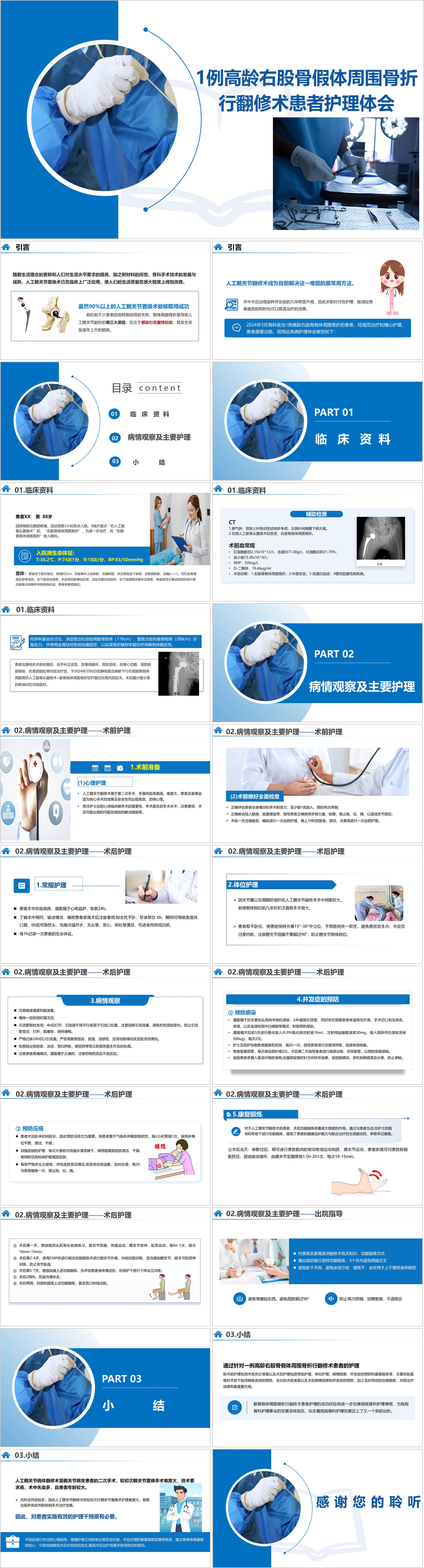 #精品 YXKJ287-1例高龄右股骨假体周围骨折行翻修术患者护理体会-个案综述PPT模板成品课件