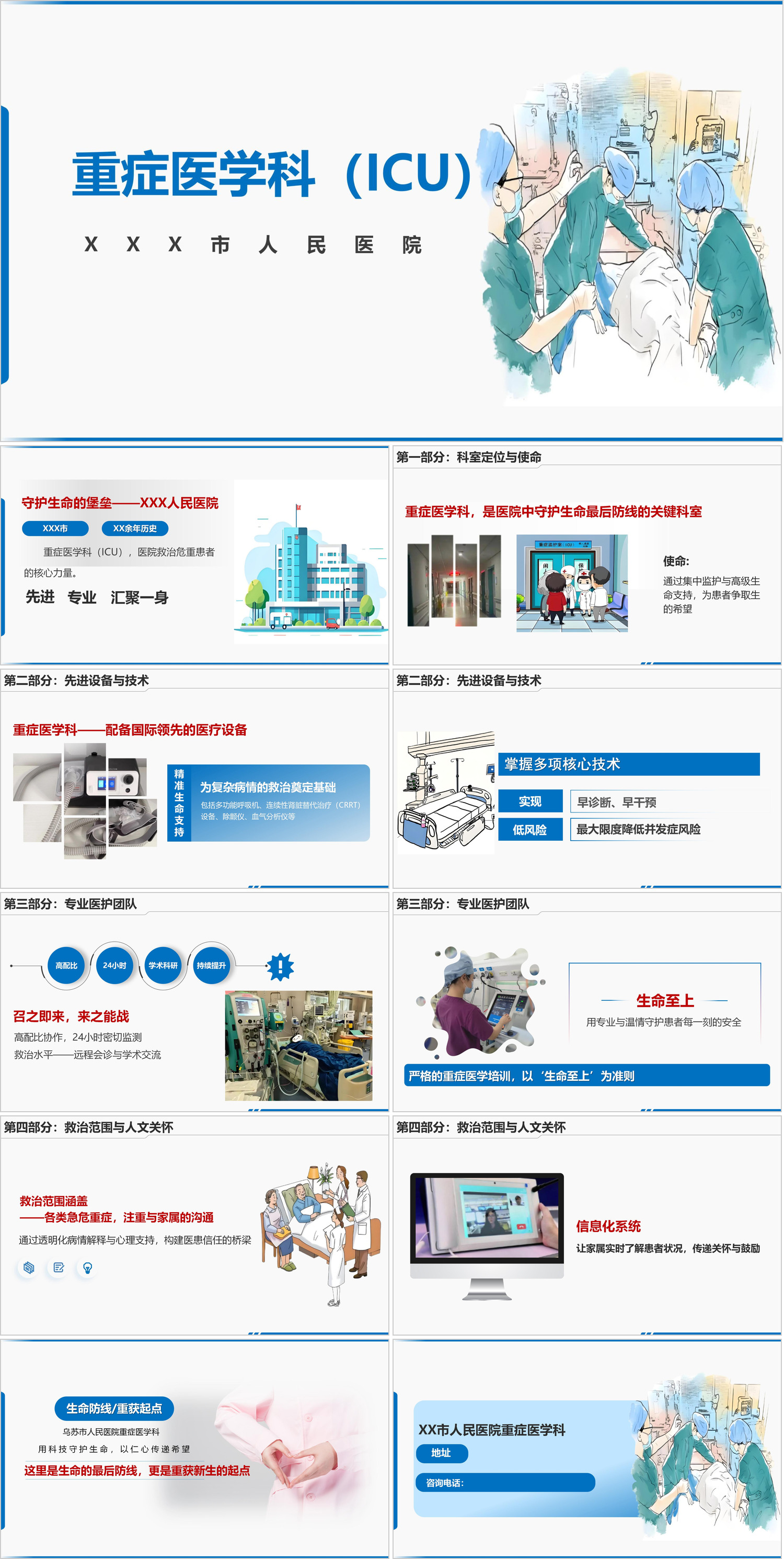 #精品 YXKJ434-ICU科室介绍-小讲课PPT模板成品课件