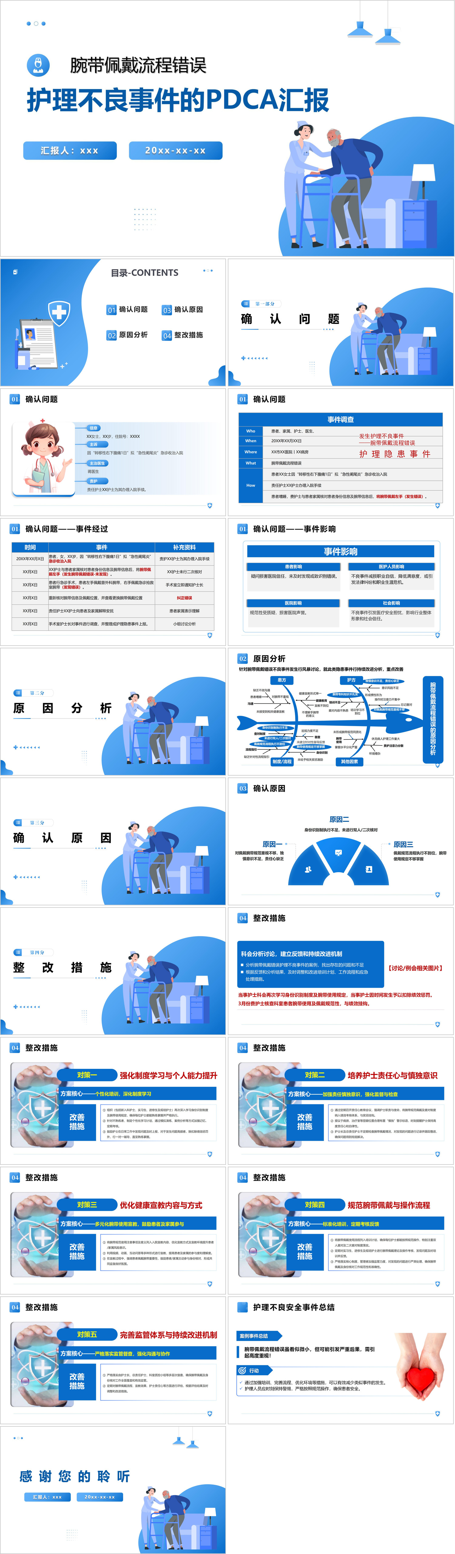#精品 YXKJ509-护理不良事件的PDCA汇报-PDCAPPT模板成品课件